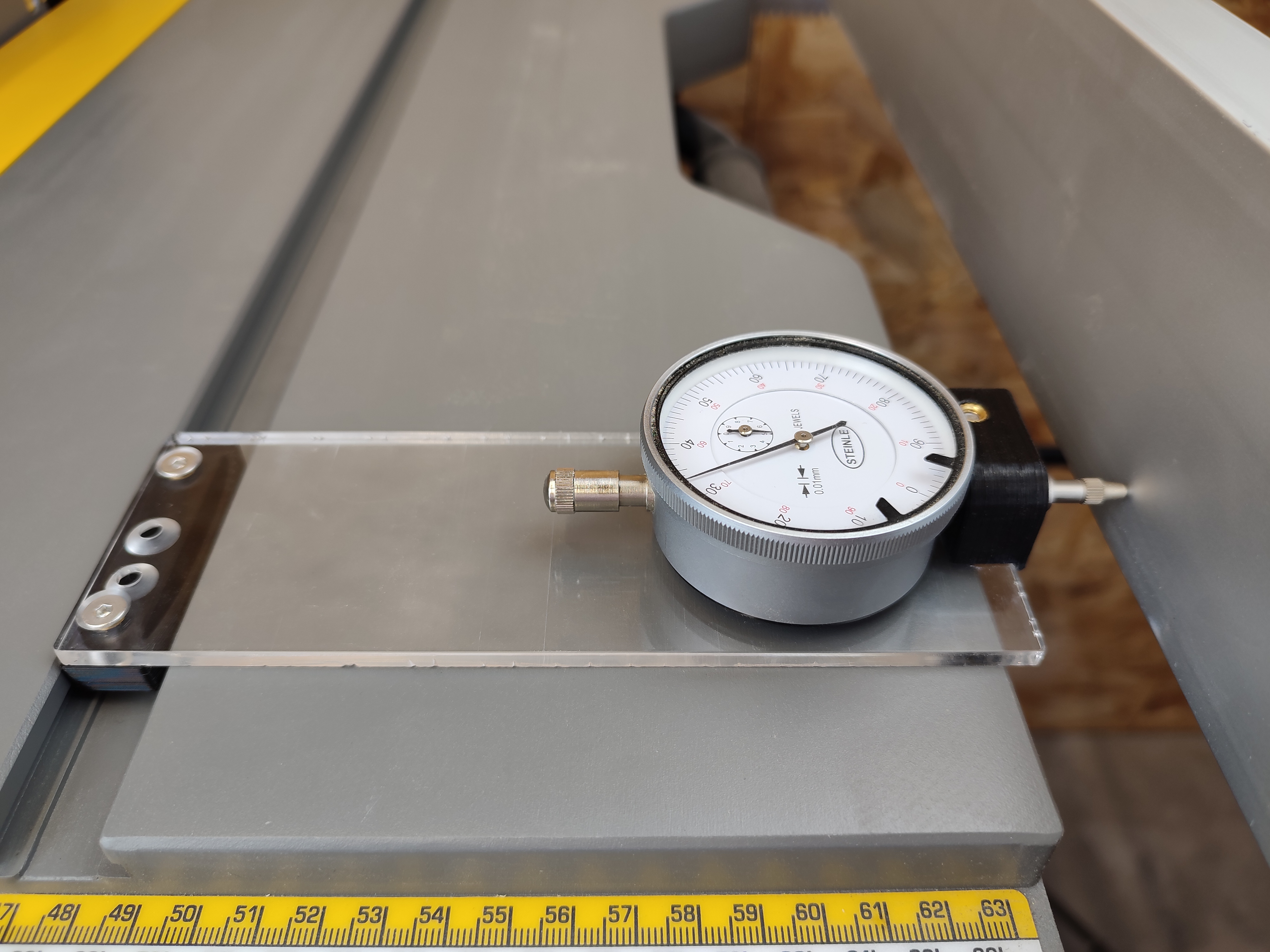 Einfach die passende Messuhr anbringen und über die Tischführungsnut der
